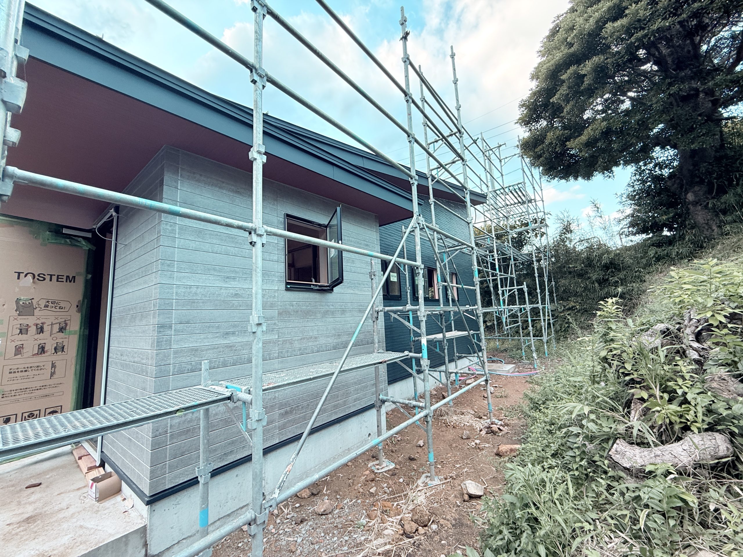 外壁サイディング工事が終わり、足場のシートを外しました。